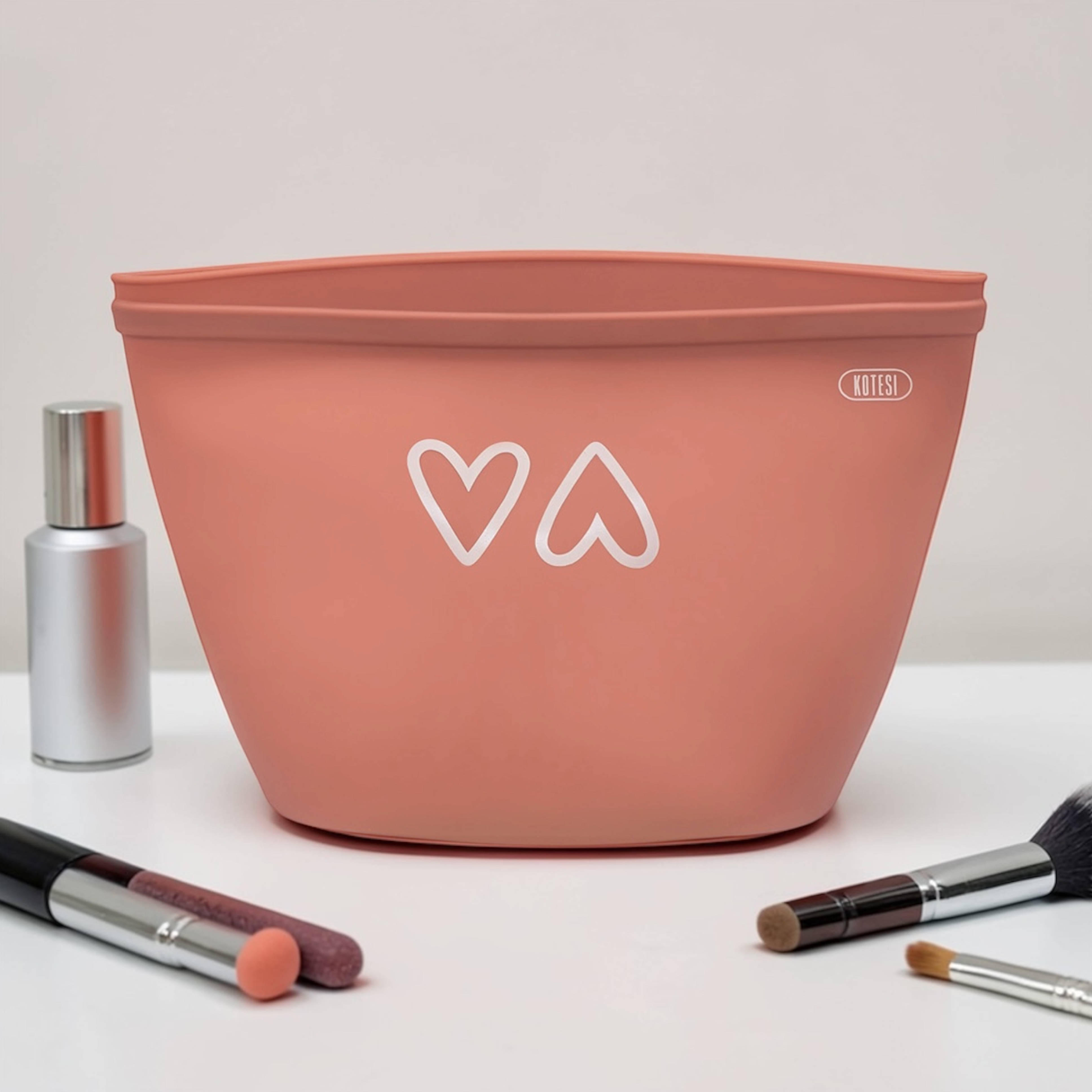 კოსმეტიკის ჩანთა დამზადებულია უმაღლესი ხარისხის სილიკონისგან და გამოირჩევა მისი გამძლე, წყალგაუმტარი და ადვილად გასაწმენდი ზედაპირით.
