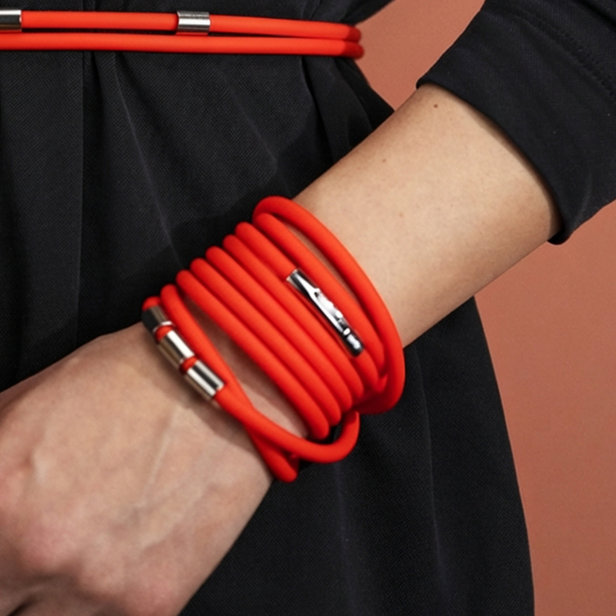 უმაღლესი ხარისხის სილიკონისგან დამზადებული ეს ქამარი მულტიფუნქციურია - შეგიძლიათ მოირგოთ როგორც სამაჯურად, ასევე ყელსაბამად. მეტალის დეტალები კი დამზადებულია უჯანგავი ფოლადისგან, რაც გამორიცხავს ფერის ცვალებადობას, არის წყალგამძლე და ჰიპოალერგიული.